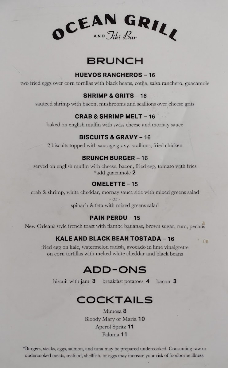 Whether seating yourself at the charming tiki bar or relaxing on the terrace, it's evident that Ocean Grill & Tiki Bar brings together quality ingredients, great service, and a vibrant atmosphere—a must-visit for any beachgoer!